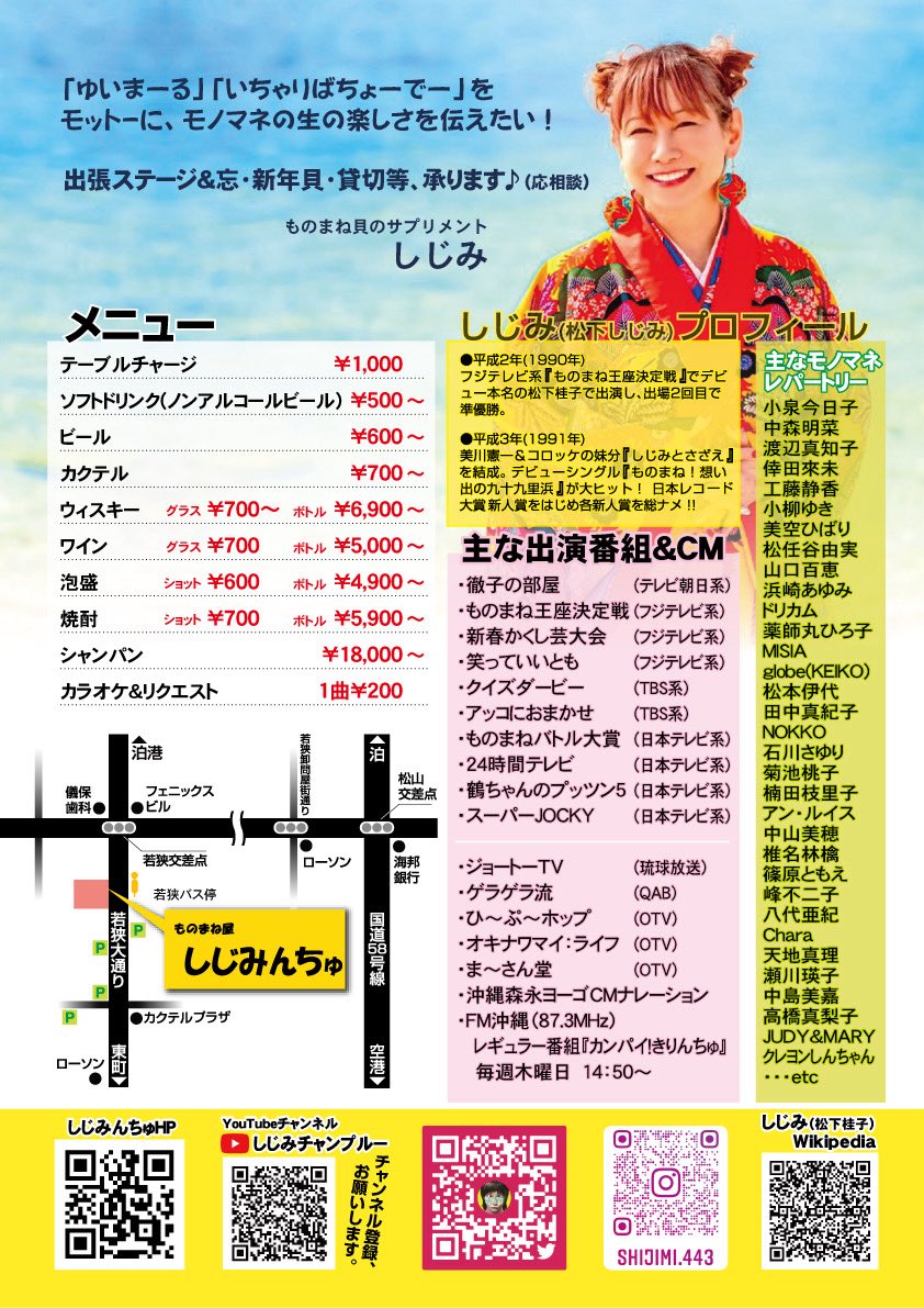 沖縄県那覇市でものまね芸人「しじみ」が運営するモノマネBAR【ものまね屋 しじみんちゅ♪】