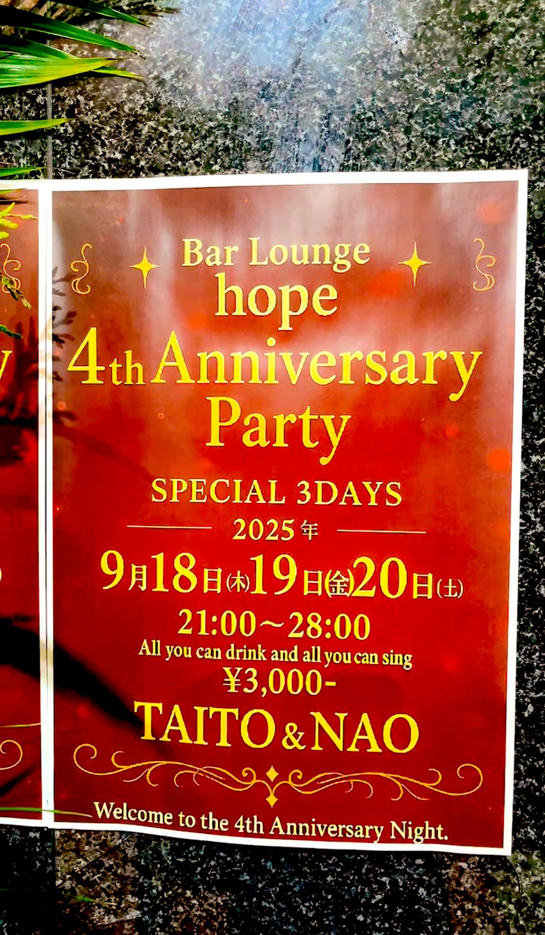 『Bar lounge hope』さん4周年おめでとう🎊🤗✨