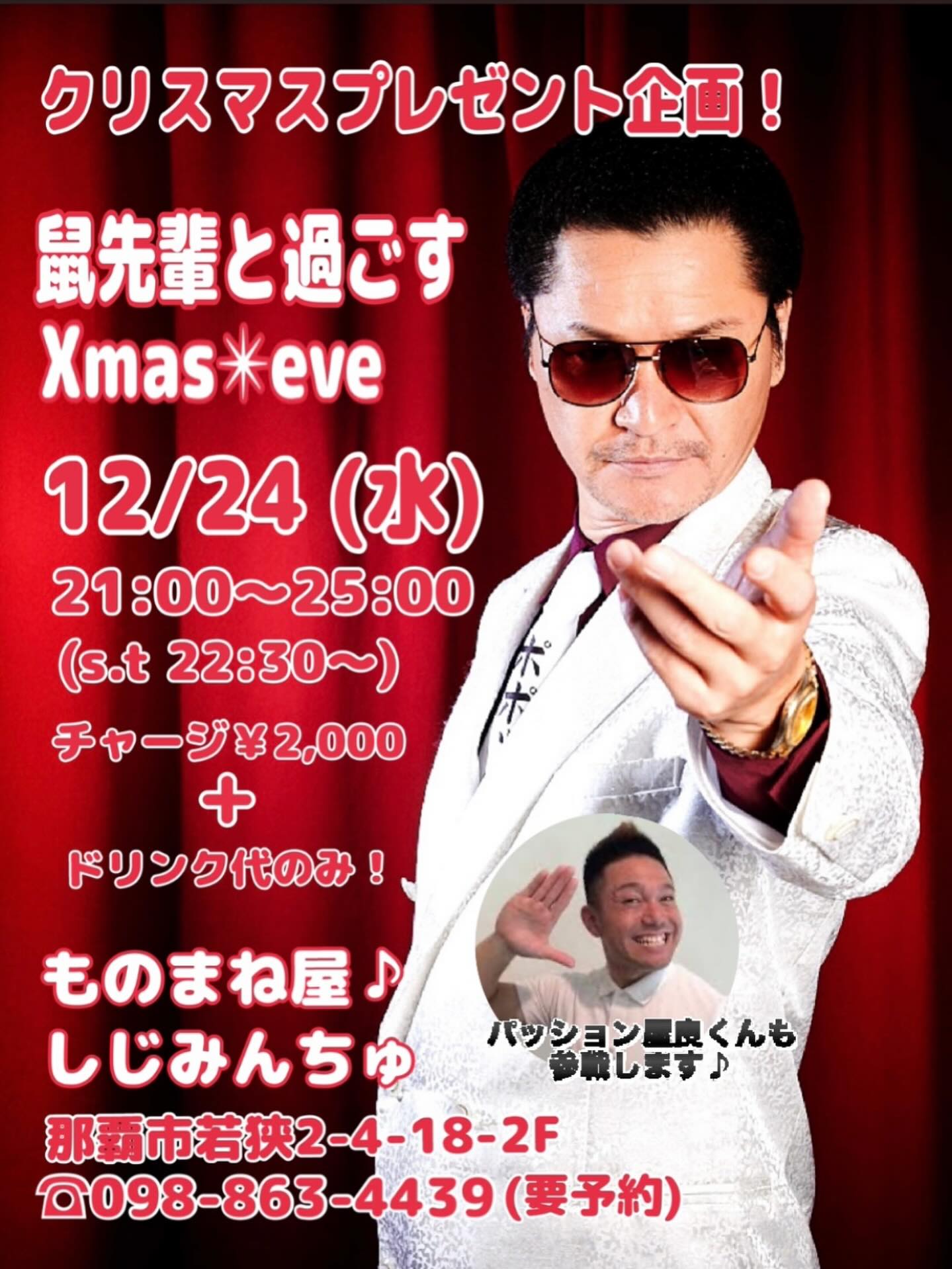 12月のイベントdayは、クリスマスプレゼント企画と致しまして、鼠先輩&パッション屋良くんをお迎えして、一夜限りのクリスマスEVELIVEをパックリ貝催しちゃいます🎤🎶