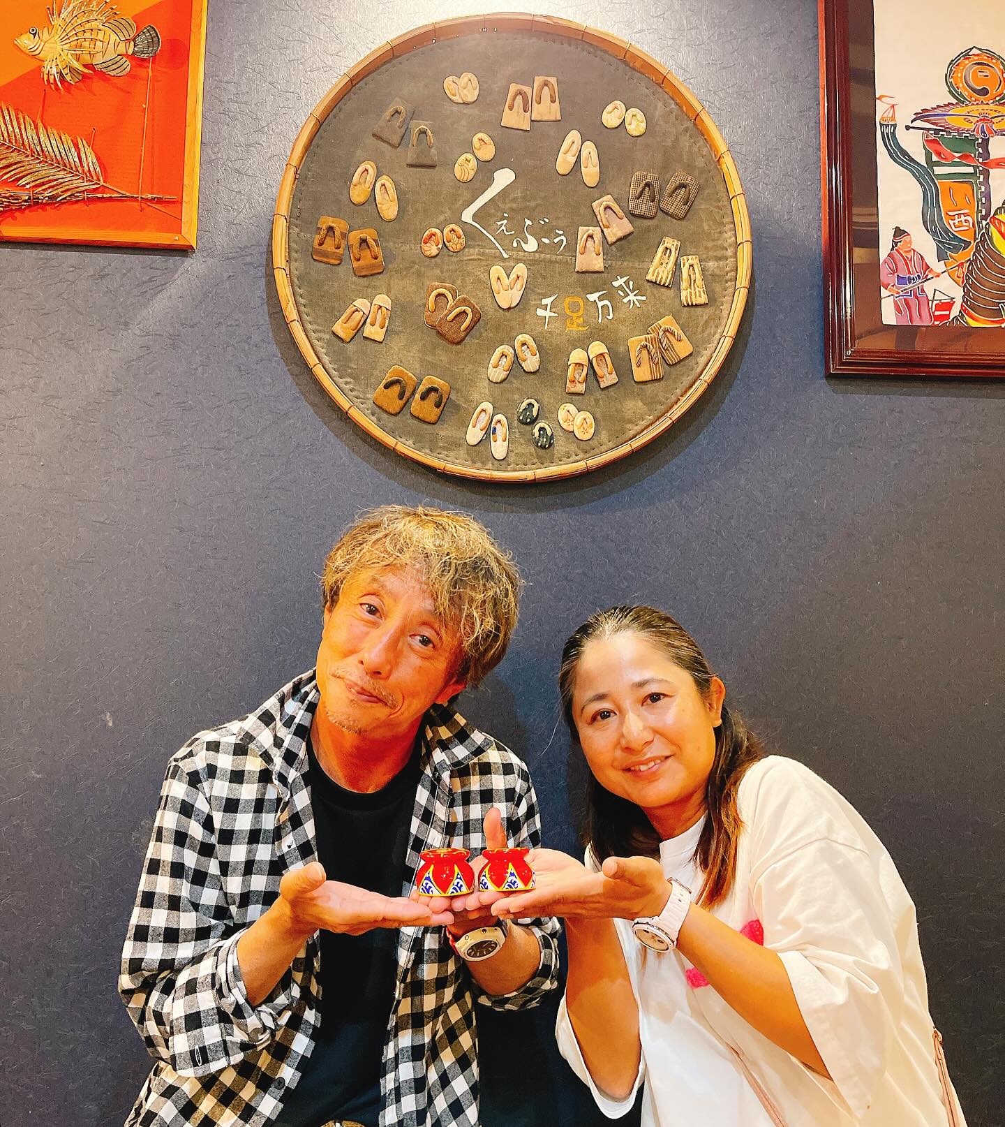 瀬底島の売れっ子カメラマン、ミニミニ長渕くん&anちゃんに、花笠キャップをプレゼント🎁